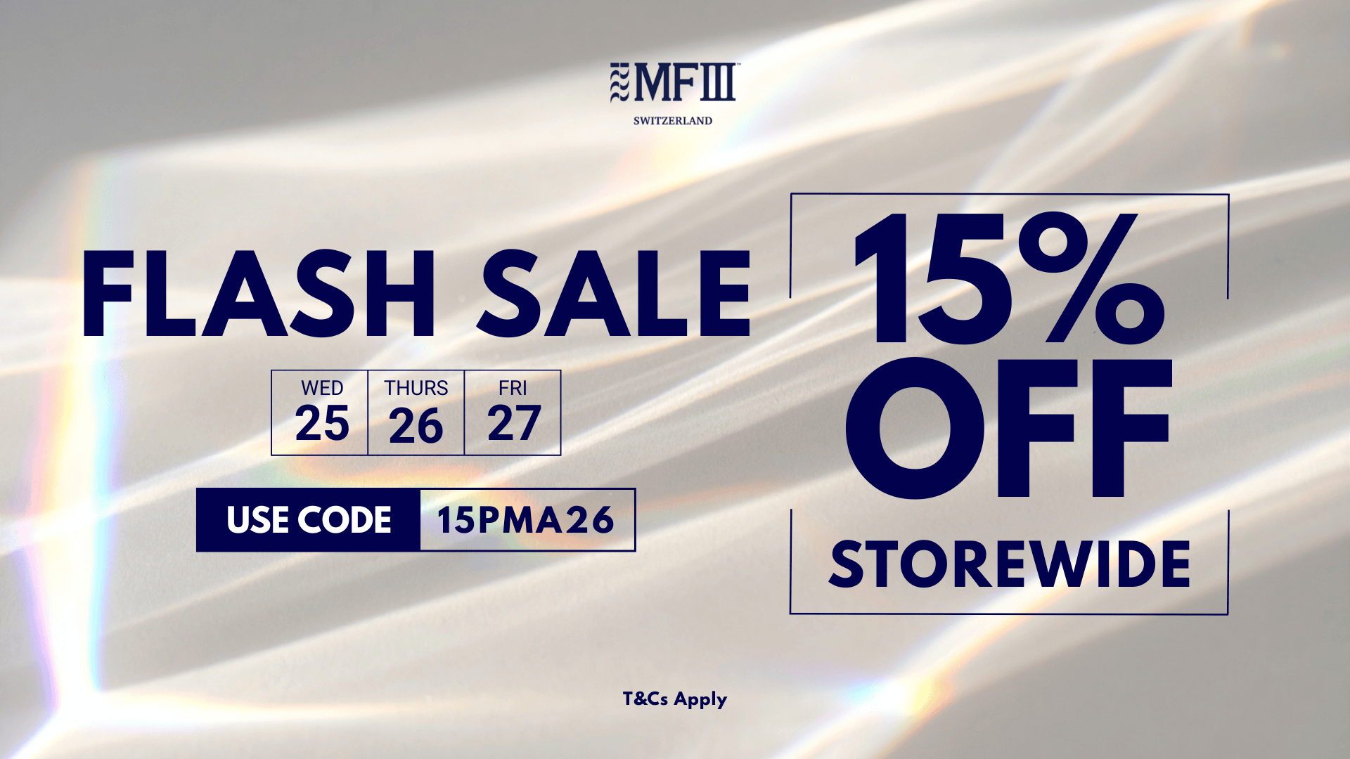 • Valid for MF3 Global Ecommerce purchases at mf3swiss.shop only.